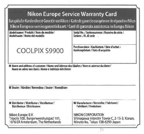 Fototehnikat ostes on loomulik, et uuel kaubal hakkavad ostuhetkest kehtima garantiitingimused, mis peaksid kaitsma tarbijat rikete eest, mis on tingitud tootja poolsest praagist. Nikon toodete tehase garantii on 1 aasta (v.a mõned spetsiifilised tooted, mille garantii on pikem) ning teine aasta on pretensioonide esitamise aeg, mis tuleneb vastavalt Eesti Vabariigi seadustest. Eestis kehtib eraisikule tarbijakaitse eeskirjade järgi vähemalt ühe aastane garantii ja lisaks üks aasta pretensiooni esitamise aega. Juriidilisele isikule kehtib tootele garantii üks aasta.