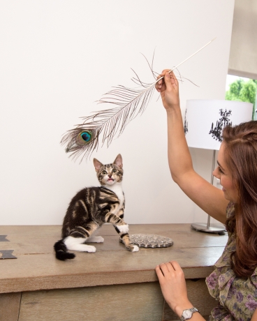 Try using props to capture different expressions. If you are photographing a dog outside, grab a long stick and use one hand to play with your pet while shooting with the other. You will get some pretty funny faces from them trying to grab it. If you are shooting a cat, remember how much they concentrate on toys. You could try dangling a feather on a string out of frame, or throwing a ball for them to chase – this can generate some hilarious cat poses if you take the photo at just the right moment.