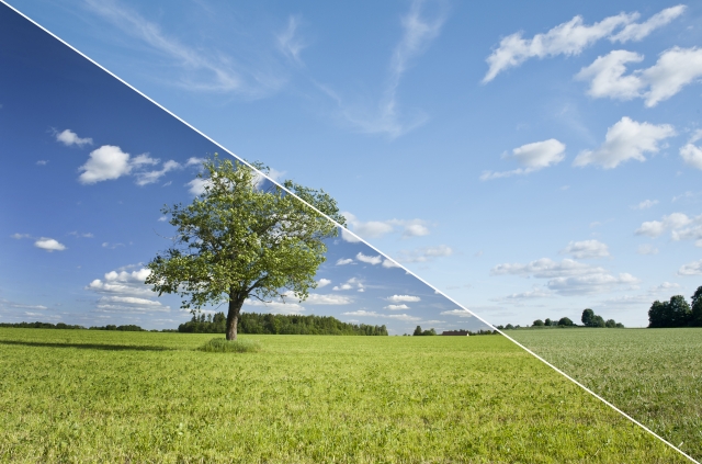 When photographing landscape, we notice that the greenness of the plants gets deeper and the colours become brighter. One reason behind this is the fact that the leaves of the plants are often covered with a layer of wax and the polarization filter enables to eliminate part of the light waves reflected from the surface of the plant