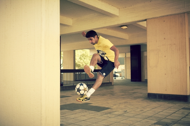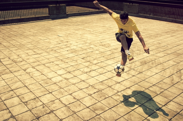- Покажите окружающую обстановку. Футбольным фристайлом можно заниматься в любом месте — запечатлейте на снимках фон, на котором все происходит, и передайте погоду.