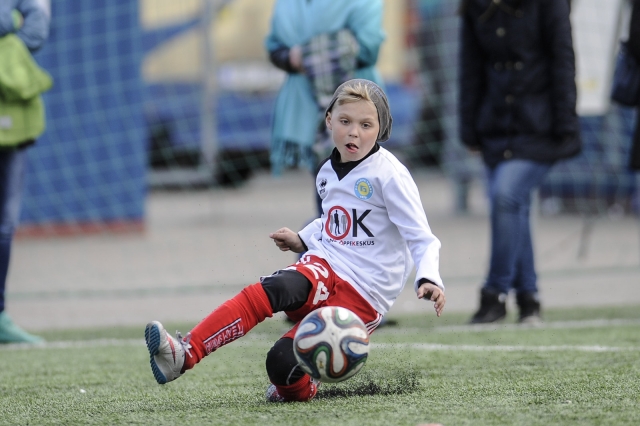 Сперва настроим камеру. Если в вашей камере есть режим следящего автофокуса, то не забудьте выбрать именно этот режим, который позволит вам удерживать в фокусе вашего юного футболиста во время игры. Далее - экспозиция. Установите выдержку не менее 1/800 сек., чтобы избежать смазанных кадров. Если вам еще сложно снимать исключительно в ручном режиме, то в данной ситуации выберите режим съемки S, который позволит сохранять выдержку неизменной лишь подстраивая значения диафрагмы под изменяющиеся световые условия. Значения чувствительности ISO установите с учетом световых условия на футбольном поле.