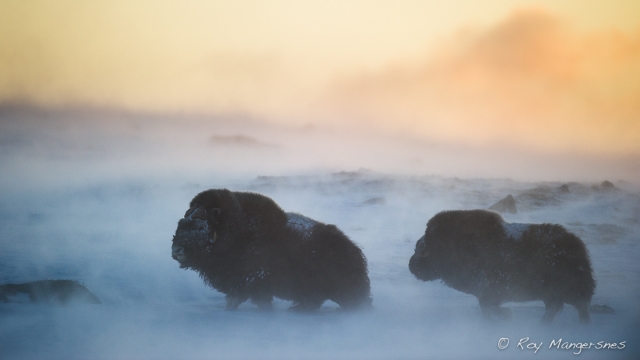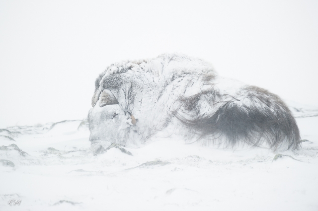 3 Взрослый овцебык (Ovibos moschatus) стряхивает налипший после бури снег Nikon D3S, Nikkor 500/4; 1/250, f/4.5, ISO 1000