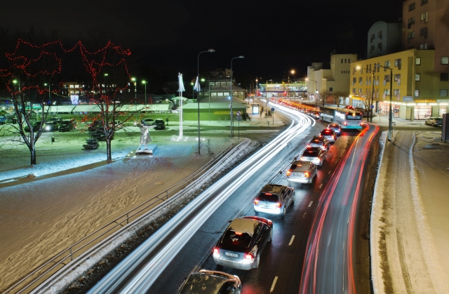 On veel kolmas võimalus. Pane kaamera statiivile ja lase mööduvatel objektidel kaamera sensorile jätta oma liikumisjälg. Nõnda on loodud pilt 3, kus kaamera seisab kindlalt statiivil ning säriaeg on 20 sekundit. Mööda tänavat liikuvad autod on jätnud endast pildile kas esi- või tagatulede valgusjutid.