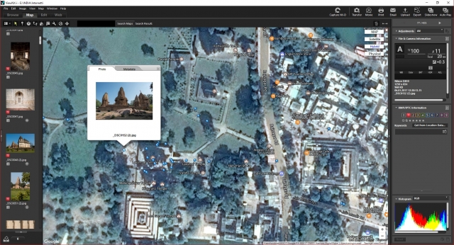 Lihtsaim võimalus exif faili vaatamiseks on Sinu kaameraga kaasas oleva tarkvaraga Nikon View NX, mille saab tasuta alla laadida Nikoni leheküljelt. Omades kaamerat, millel on juba GPS funktsioon sisse ehitatud näiteks Nikon D5300, tuleb see menüüst vaid aktiveerida. Uuem võimalus on Nikoni kaameratel, mis toetavad SnapBridge funktsiooni (näiteks COOLPIX A900 või peegelkaamera D500). Siis töötab Sinu kaamerasse paigaldatud tarkvara püsiva ühenduse kaudu Sinu nutiseadmega. Kaamera salvestab automaatselt Sinu pildid nutiseadmesse ning lisab asukohaandmed ning aja. Peegelkaameratele on võimalik GPS seade juurde osta (juhul kui kaameras puudub sisse ehitatud seade). Selleks on lisatarvik GP-1A. See seade paigaldatakse kaamera välgupesasse ning juhtme kaudu ühendatakse kaameraga. Nüüd kaamera salvestab pildi exif faili nii laius- kui pikkuskraadid, lisab kõrguse merepinnast ning täpse kellaaja. Nikon NX-i programmis Lingile „Map“ vajutades avaneb Googel Maps kaart. Vastavalt Sinu soovile näed seda aerofoto või kaardi versioonis. Automaatselt tähistab programm kõikide selles piirkonnas tehtud piltide võttepaigad kaardile. Nendel klikkides on võimalik avada pildifail, märkida kaardile liikumismarsruuti ning mõõta läbitud vahemaid.